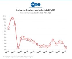 El Índice de Producción Industrial Pyme (IPIP) que elabora CAME, con una muestra que alcanzó unas 384 industrias pyme a nivel federal, detalló que la producción de la industria manufacturera pyme subió 0,4% en abril frente al mismo mes del año pasado, a precios constantes. Así, acumula un aumento de 1,8% en el primer cuatrimestre del año (frente a los mismos meses de 2022). En la comparación con marzo, la actividad se retrajo 1,9%.