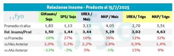 Las relaciones insumo-producto se encuentran en una situación desfavorable en comparación con el promedio histórico, aunque similares a 2024.