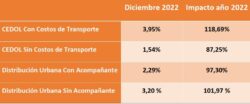 De los cinco indicadores mencionados (incluido el de FADEEAC), tres registran un acumulado anual por arriba del 100%, dos de ellos cercanos al 120%. Y los que no sobrepasaron el 100% llegaron al 87,25% y 97,30%, por lo tanto, todos los resultados estuvieron muy cercanos o por encima del 100%, convirtiendo al costo de las operaciones logísticas en un elemento crítico del sector durante 2022.