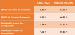 El analisis detalla que la variable combustible mantiene su protagonismo desde comienzo del año, en el caso del mes de junio con un impacto del 5,52%. Y se registraron fuertes subas en los rubros de Seguros (20,73%) Lubricantes (8%) y Material Rodante (7,28%). Todos estos porcentajes provienen de los ítems del indicador que elabora la  Cámára que reúne a los autotransportistas FADEEAC. En tanto se indico que a estas variaciones se suman otras menores, dando un como resultado un aumento de más del 50% en el primer semestre 2023 para los indicadores que se emiten desde CEDOL.