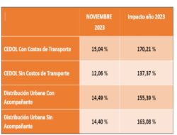 La Universidad Tecnológica Nacional (UTN) a través de su Centro Tecnológico de Transporte, Tránsito y Seguridad Vial (C3T), dio a conocer la evolución del Índice de Costos Logísticos Nacionales elaborado para la Cámara Empresaria de Operadores Logísticos (CEDOL), correspondiente al mes de noviembre 2023.